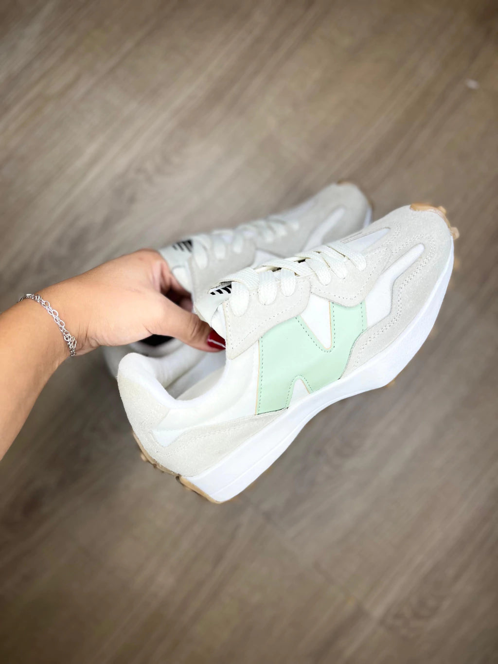 NB 327 Creme com Verde